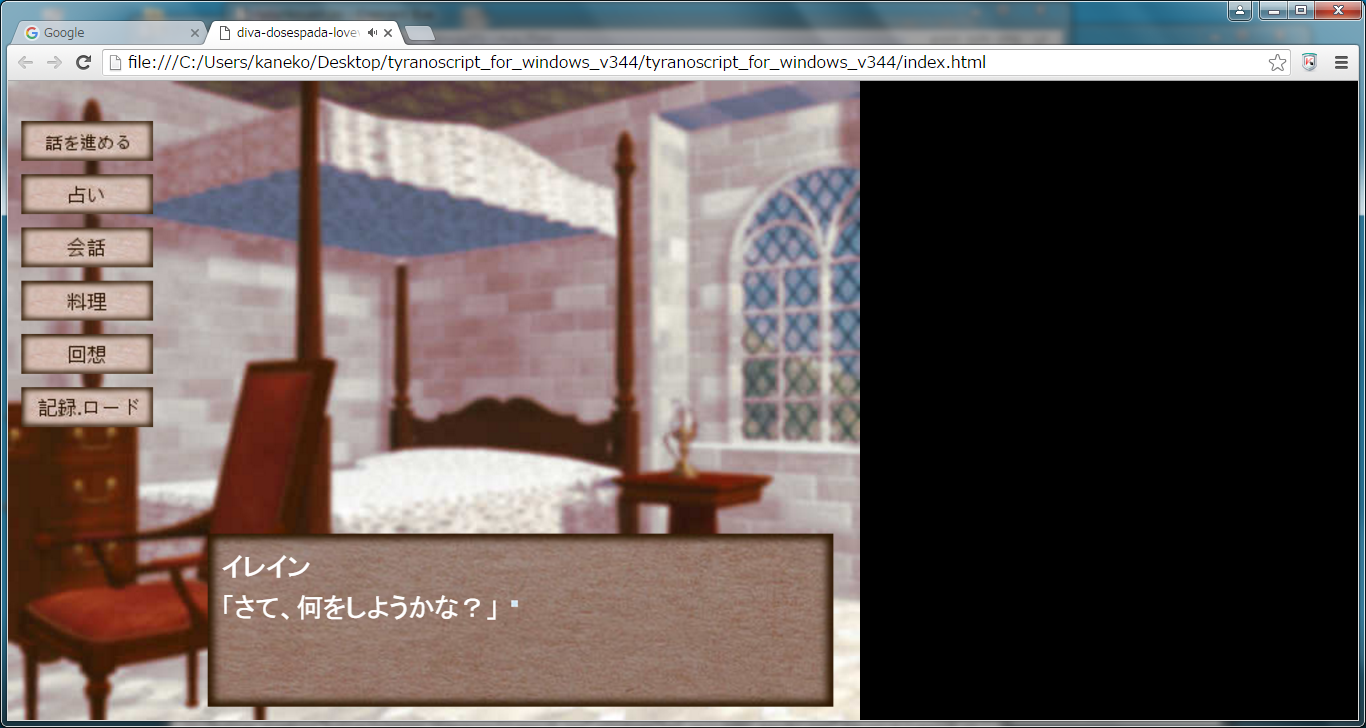 自由行動時、会話と料理のときにアドベンチャー形式になりイラストが表示されます。